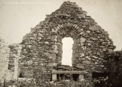 It had taken over ten years to get there. The long journey home began with a small photograph in a photograph album Charles R. Browne assembled in 1897 and his daughter gifted to the Manuscript Library in TCD in 1995. Felicity O’Mahony showed me in 2009 in the aftermath of a very successful project built around John Millington Synge’s photographs of the Aran Islands. The photograph showed a collection of skulls in a niche in the east wall of St Colman’s Monastery. Three years later, the Royal Irish Academy published a paper on Browne’s ethnographic study of the islands in which Browne described how he tried steal more skull but was thwarted by the islanders.