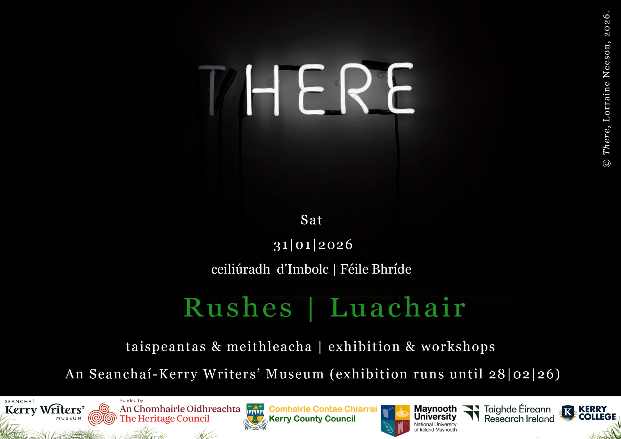 As such, the symposium constitutes the terminus for a two-year R&D journey at Kerry Writers’ Museum, which the Heritage Council funded. That journey will continue. The conversations that happen during the meitheal | workshop will be summarised in a manifesto inspired by and engaged with the work on show.